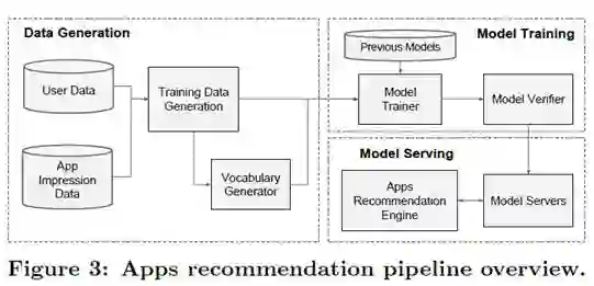 该Apps推荐系统主要包括数据生成, 模型训练, 模型服务三部分: