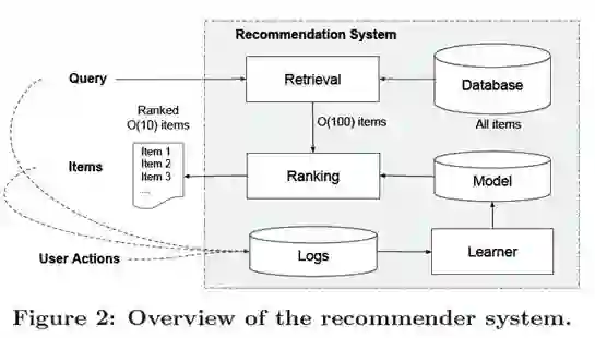 推荐系统主要由Retrieval System与Ranking system两部分组成。输入query,是用户信息与上下文信息构成的特征,输出则是经过推荐模型排序的条目列表。