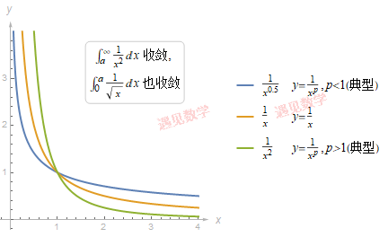 的图像足够接近于 y 轴, 所以它所对应的积分是收敛的; 而 1x