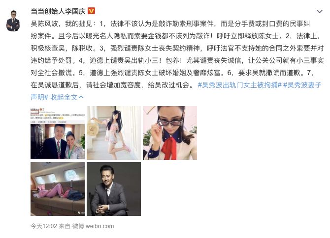【当当创始人李国庆谈吴秀波事件:审查双方税收,呼吁立即释放陈昱霖】