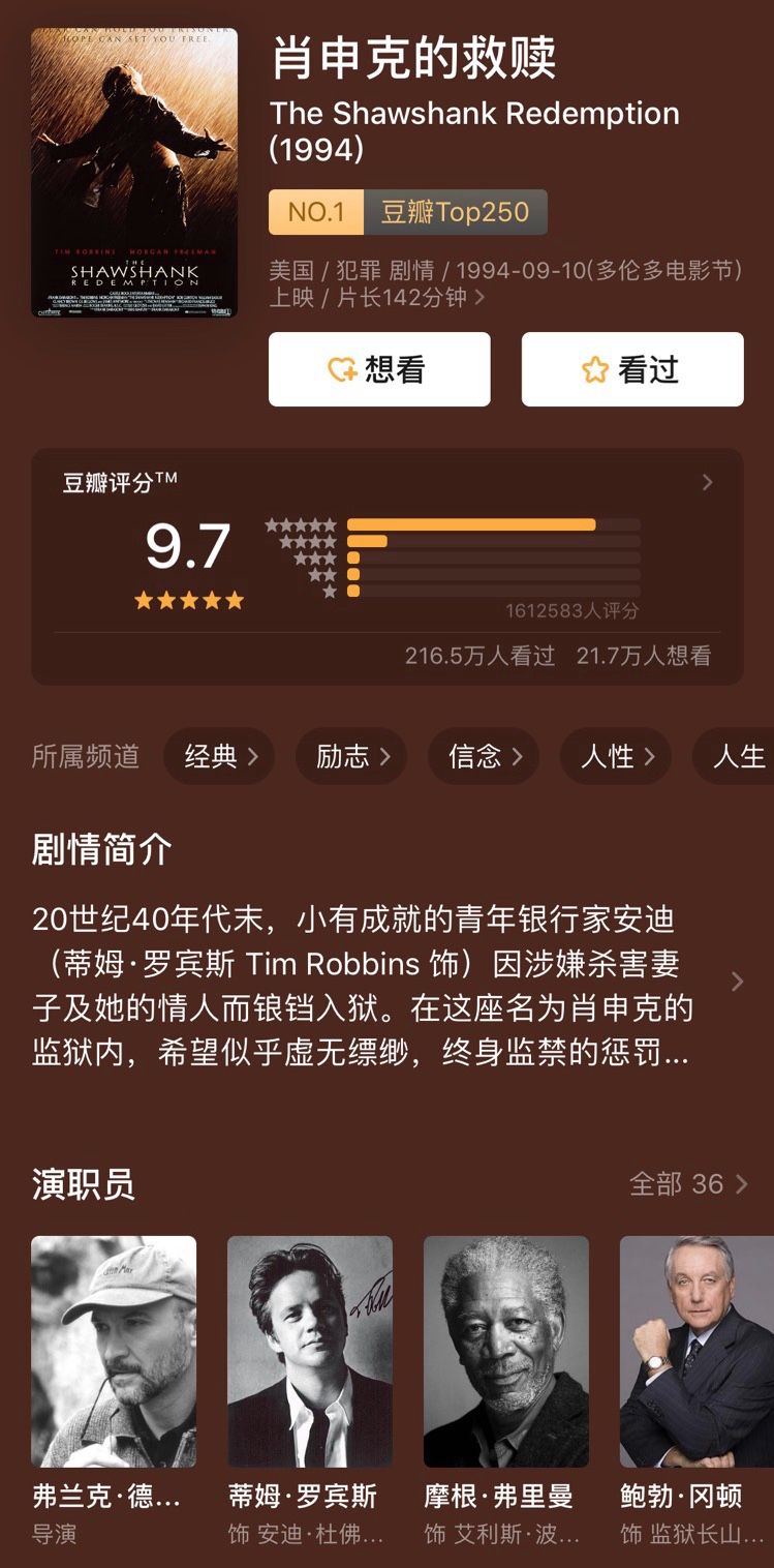 它是IMDb 《史上250部最佳影片》和豆瓣电影排行榜的双料第一名。