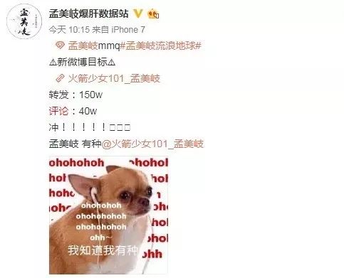 图为孟美岐数据组发布的任务,评论和转发的数量差距较大