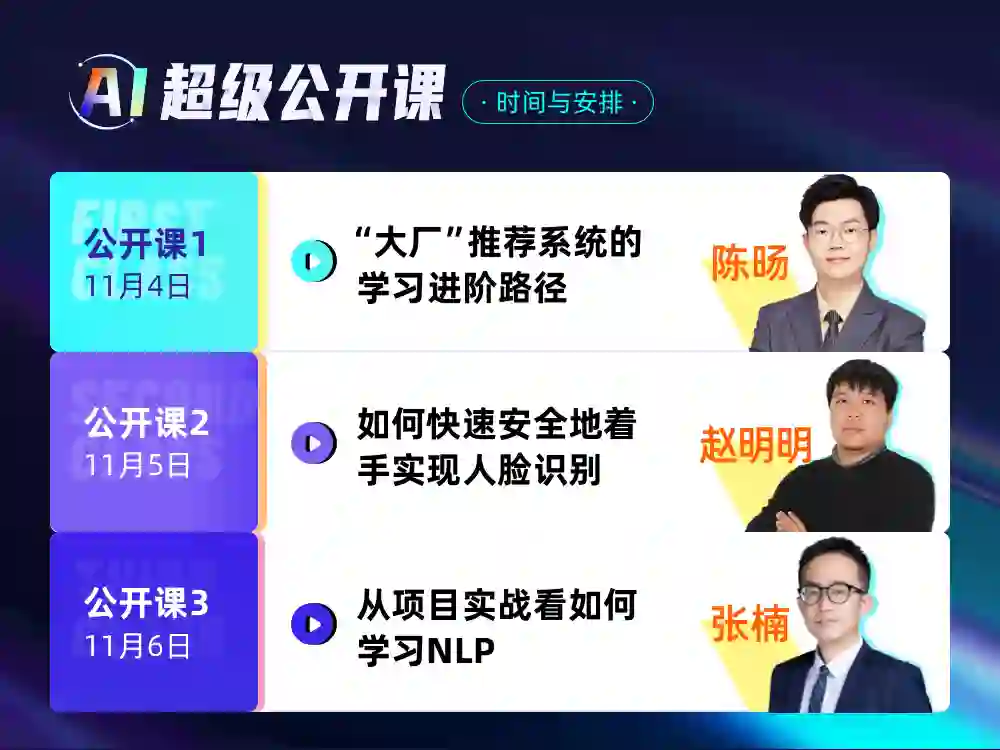 这对于想要学习AI的人来说,是一大福音。目前,人工智能主流方向是自然语言处理、计算机视觉和推荐系统,开课吧结合CNCC热议话题,集结10+位教研老师精心研发出免费《AI超级公开课》。根据AI细分方向学科特色,让你轻松入门AI行业。希望这堂AI知识盛宴能够帮助到你。