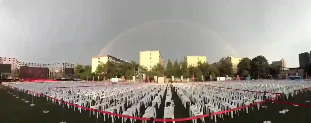 “2018年9月19日19:00,纪念中国科学技术大学建校六十周年"永恒的东风"校友师生联欢晚会全球直播http://live.ustc.edu.cn。这是下午4点在晚会现场拍摄到的彩虹。难道老天真有眼?”