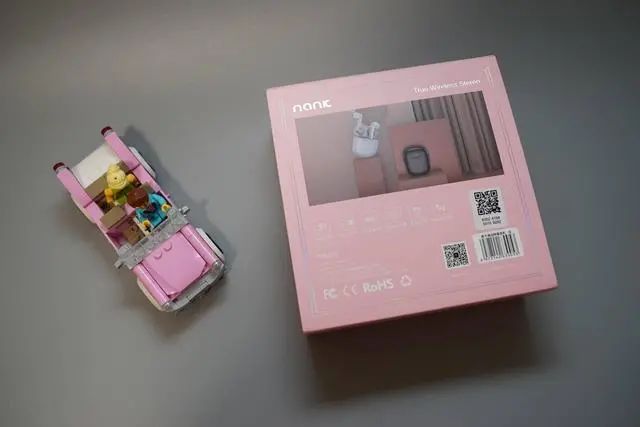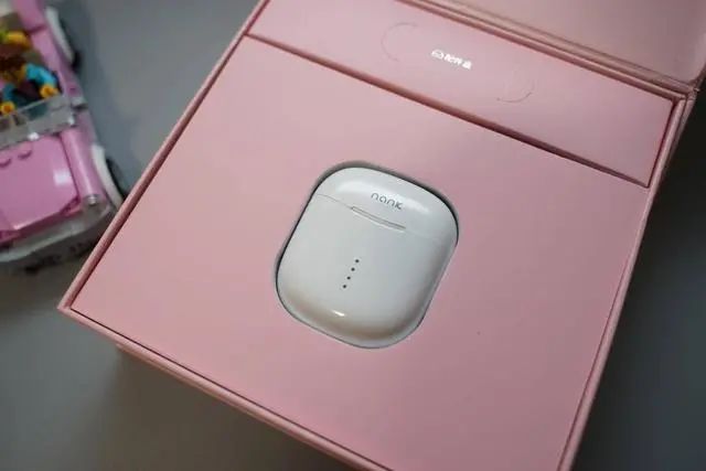有别于之前南卡所出的TWS耳机外盒设计,南卡Lite这次采用了粉嫩嫩的少女粉,外盒正面印有”the best gift",嗯,送给朋友或者女友是个不错的选择。