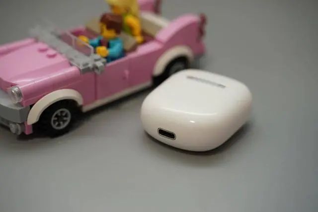 底部USB-C充电口,内置的电池容量是350mAh,充电15分钟可以保证续航1小时;充电仓满电可给耳机充3-4次电,耳机单次听歌可续航4-5小时。满足日常的听歌使用完全没问题。
