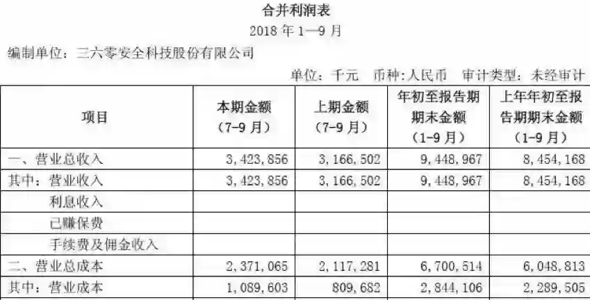 营收方面,三六零公司2018年10月30日发布的三季度财报显示,三六零前三季度营收为94.49亿元,同比增长11.77%;前三季度的净利润为25.16亿元,同比增长7.93%;前三季度的扣非净利润为23.64亿元,同比增长25.37%。营收增速和净利润增速较2018年前两季度均有所放缓。