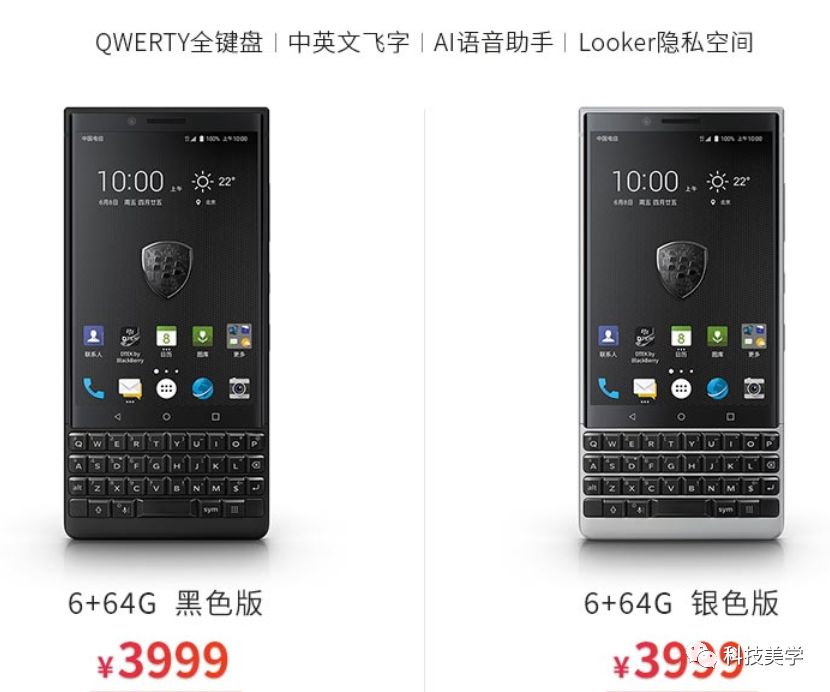 黑莓KEY2搭载高通骁龙660处理器,6GB内存,64GB、128GB两个存储版本。