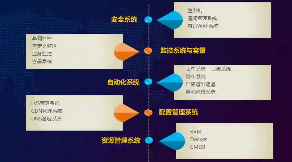自动化系统,我们有工单、日志、发布、自研运维通道、以及自动巡检系统。这些都能为运维的交付和变更提供效率上的提升。