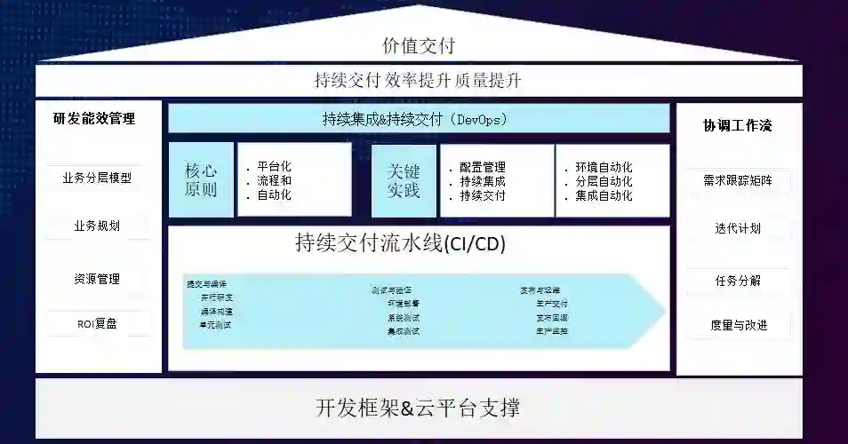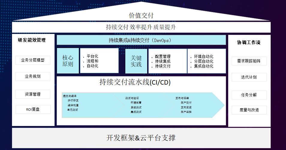 那么我们追求的是一个什么样的价值框架呢?如图所示,最下面是一个开发框架平台。
