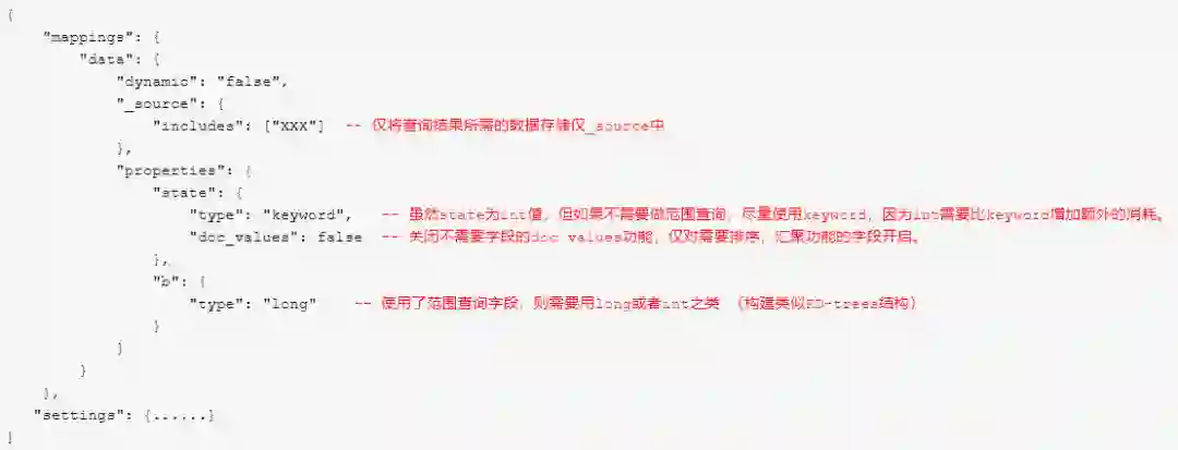 3)关闭不需要查询字段的_source功能,不将此存储仅ES中,以节省磁盘空间。