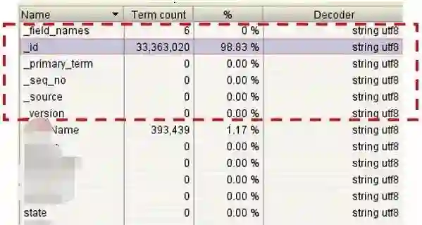 通过Luke工具查看ES的Lucene文件如下,主要增加了_id和_source字段: