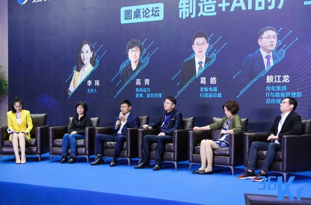 春风动力董事兼副总经理高青、老板电器副总裁葛皓、传化集团IT与数据管理部总经理赖江龙、芯片超人CEO姜蕾、云栖制造CEO周工爽,碰在一起,聊了聊未来制造业+AI的场景和机遇。