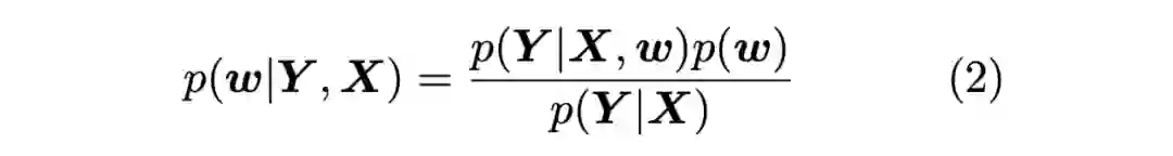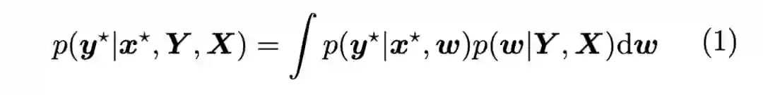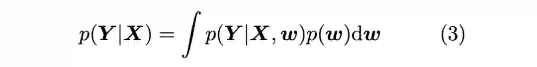 过程是和模型结构相关的,这也启发了一系列将高斯过程与贝叶斯深度学习相结合的研究,一种思路就是利用上述权重空间的高斯过程,对基函数插值系数使用贝叶斯估计从而为模型结构的不确定性建模,公式(11)可表示如下