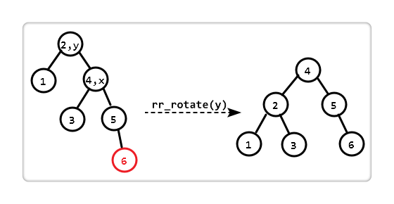 我们只需对 "以 y 为根的子树" 进行 "右右旋转 (rr_rotate)" 即可。一次旋转后,恢复平衡。