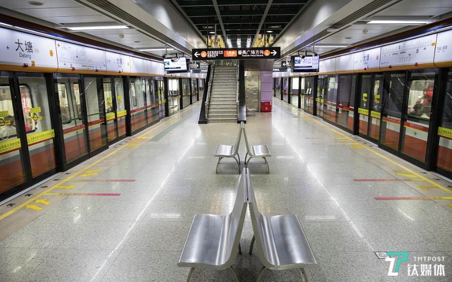 2月3日,广州,大批外来务工人员回乡过年,平时拥挤的三号线的大塘站空无一人。
