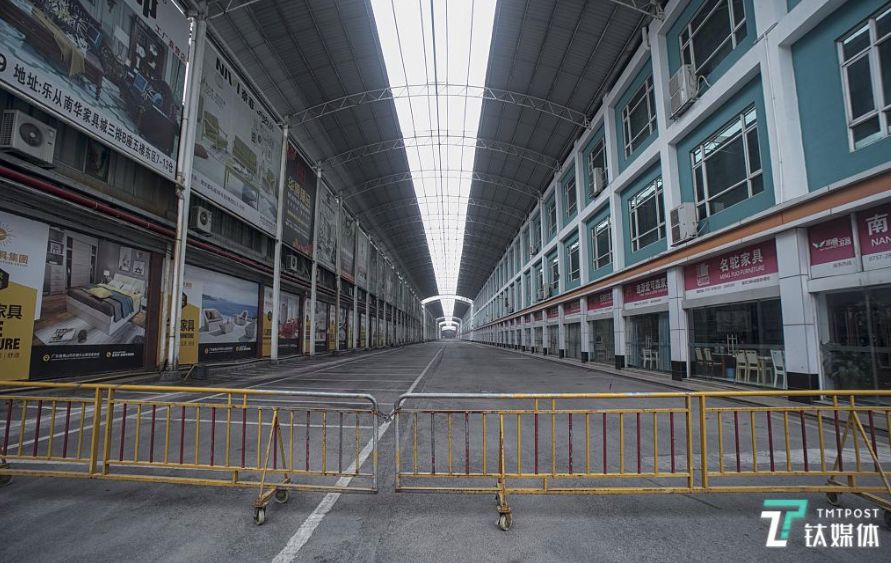 2月3日,广东佛山,春节期间封闭的乐从家具市场。