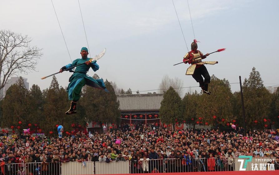 2月5日,河南省许昌市灞陵桥景区上演三国情景剧《白马坡》。
