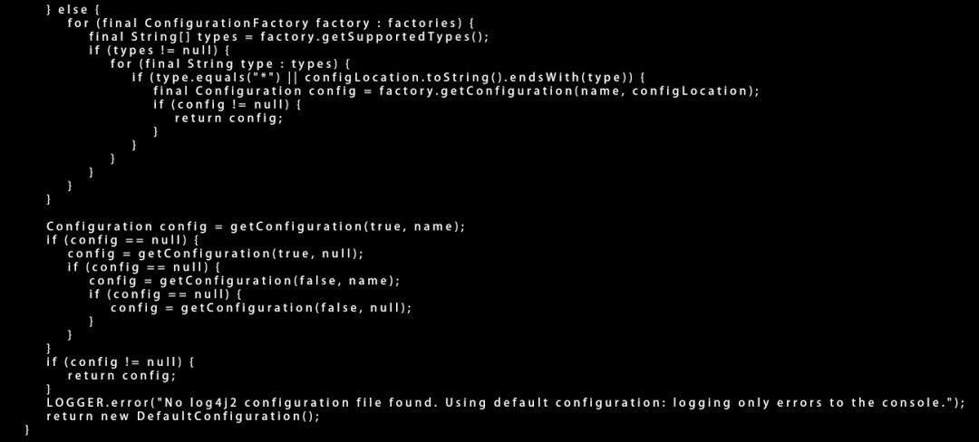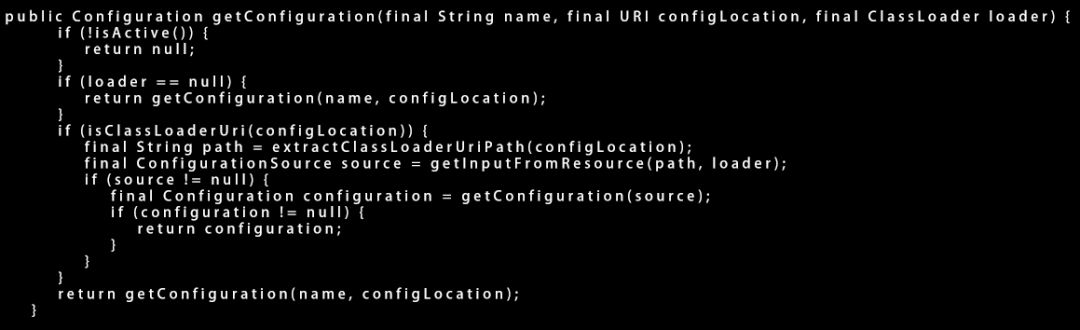 回到reconfigure这个方法,我们看到获取ConfigurationFactory实例之后会去调用getConfiguration方法: