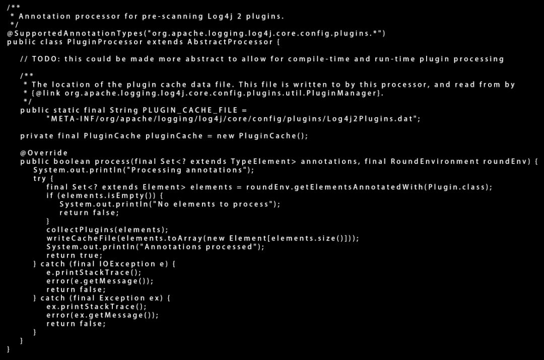 可以发现加载时候是从一个文件(PLUGIN_CACHE_FILE)获取所有要获取的plugin。看到这里的时候我有一个疑惑就是,为什么不用反射的方式直接去扫描,而是要从文件中加载进来,而且文件是写死的,很不容易扩展啊。然后我找了一下PLUGIN_CACHE_FILE这个静态变量的用处,发现了PluginProcessor这个类,这里用到了注解处理器。