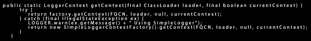 该组件是Log4J启动的入口,后续的LoggerContext以及Logger都是通过调用LogManager的静态方法获得。我们可以使用下面的代码获取Logger