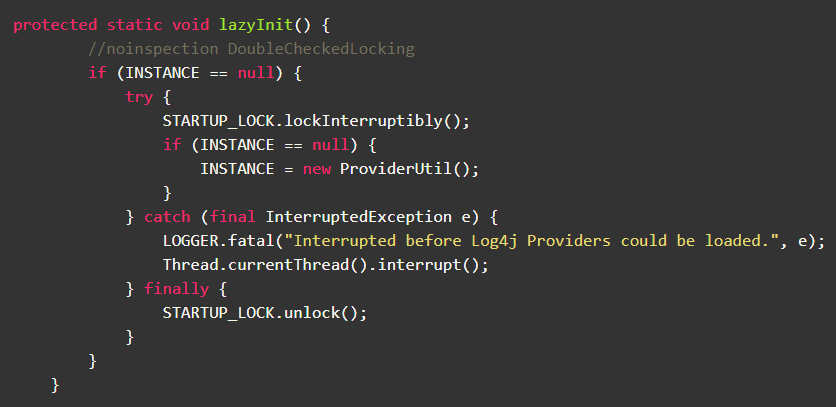 这里比较有意思的是hasProviders和getProviders都会通过线程安全的方式去懒加载ProviderUtil这个对象。跟进lazyInit方法: