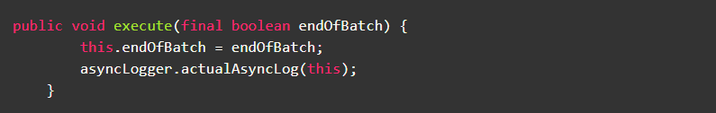 通过注释可以发现,这个onEvent就是处理逻辑,回到RingBufferLogEventHandler的onEvent方法,发现里面有一个execute方法,跟进: