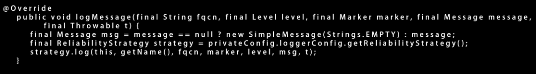 这里可以看到在实际打日志的时候,会从config中获取打日志的策略,跟踪ReliabilityStrategy的创建,发现默认的实现类为DefaultReliabilityStrategy,跟进看实际打日志的方法
