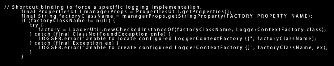 如果没有找到对应的Factory的实现类则通过ProviderUtil中的getProviders()方法载入providers,随后通过provider的loadLoggerContextFactory方法载入LoggerContextFactory的实现类
