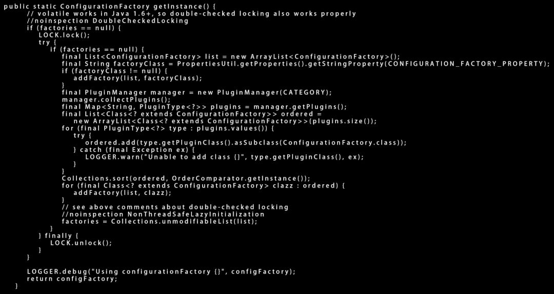 可以看到每一个configuration都是从ConfigurationFactory拿出来的,我们先看看这个类的getInstance看看: