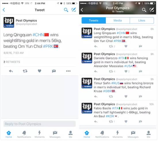 “会讲故事的新闻机器人”Heliograf,是《华盛顿邮报》最有人气的机器人,中国读者也不会完全陌生,因为在2016年夏天的里约奥运会上,Heliograf曾经与今日头条的机器人记者小明同台竞技。