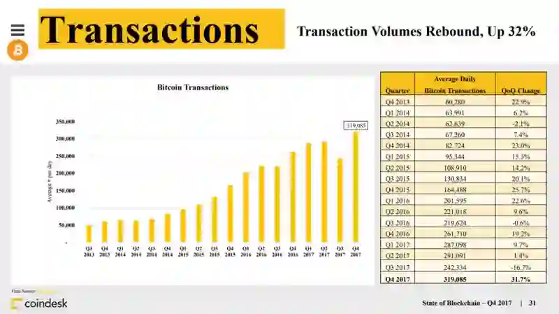过去四年来,Coindesk 一直致力于区块链相关的新闻、活动和研究。近日,该公司发布了 2018 区块链状态报告。该报告提供了 160 多页区块链相关的研究,内容涵盖密码货币投资、企业区块链解决方案、通过首次币发行( ICO )来融资、政府 & 监管及市场气氛。InfoQ 对报告进行了分析,并列出了影响读者的重要进展。