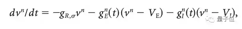 而通过下面这个LIF(leaky integrate-and-fire)方程,第n个神经元vn的膜电位会趋向标准化尖峰阈值Vth: