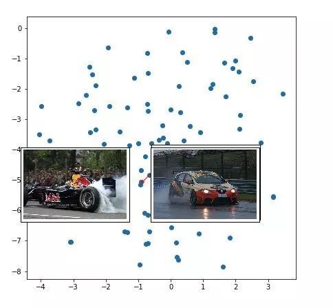 赛车的图像被聚类在一起。