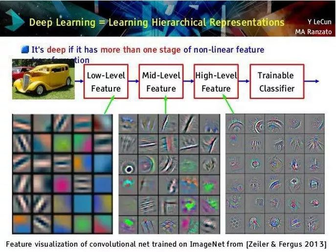 随着表示(由于深度网络的层次性而自动出现)日益丰富,图像分类的任务也变得微不足道。最后一层要做的就是权衡车轮和车门的概念更像汽车以及耳朵、眼睛的概念更像人。