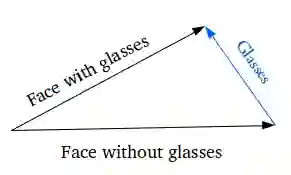 添加新的样本特征如何生成特定的特征?如在脸上生成眼镜。首先,找到两个样本,一个戴眼镜,一个没有,从编码器获得它们的编码矢量,并保存差异。 将这个新的“眼镜”矢量添加到其他脸部图像,并解码它。