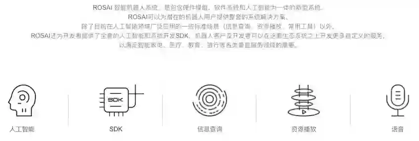 今天的战略升级,则是意味着Roobo不再只做家用的C端机器人,而是正式进军B端。Roobo推出ROSAI智能机器人系统,这个系统包含硬件模组、软件系统和一系列人工智能的能力,即一整套机器人解决方案,以满足智能家电、医疗、教育、银行等各类垂直服务领域的需要。