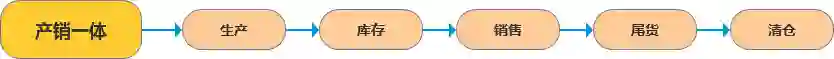 初始的是这种传统生产销售模式,产销一体,工厂生产出产品变成库存,业务员去跑业务销售产品,库存剩余后折价销售。