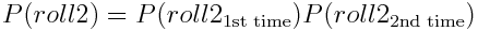 但是为什么这个公式可行?首先,我们将第一次投掷和第二次投掷的事件重命名为 A 和 B,以消除语义影响,然后将我们看到的两次投掷的的联合概率明确地重写为两次投掷的单独概率乘积: