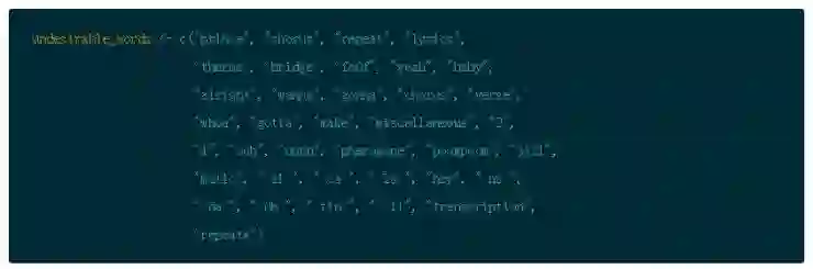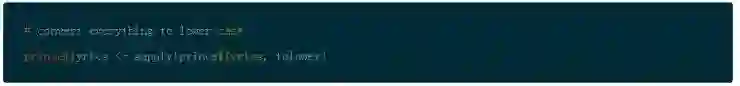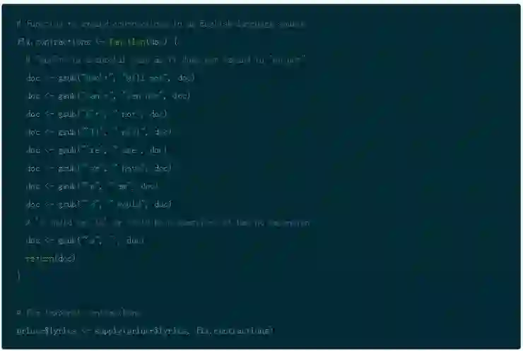 首先,通过使用 gsub() 创建一个小函数来处理大部分场景以避免那些烦人的收缩,然后再所有歌词上应用该函数。