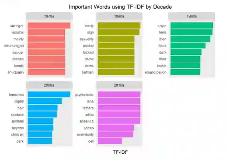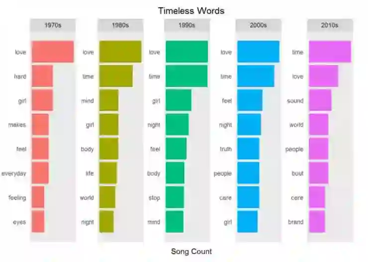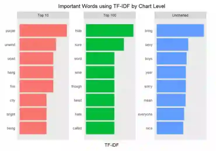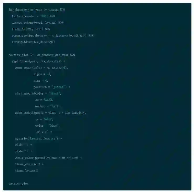 接下来,你通过把歌词转换词的表示以便于观察歌词复杂性的方法,更加深入地钻研文本挖掘。分析结果为接下来的情感分析和主题建模提供关键视角。