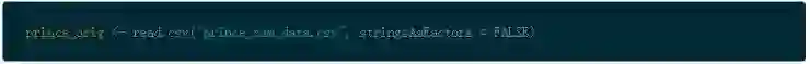 使用原始的数据集来做这件事 prince_orig,然后使用 %>% 管道操作传入 select()。这样的方式你能够从左到右的读取代码。