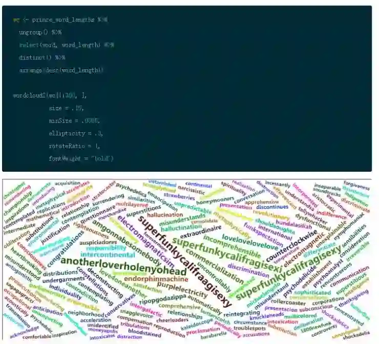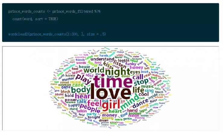 这个方法的词云图以全新的视角显 Prince 中的歌词的重要词汇,事情变的越来越有趣。