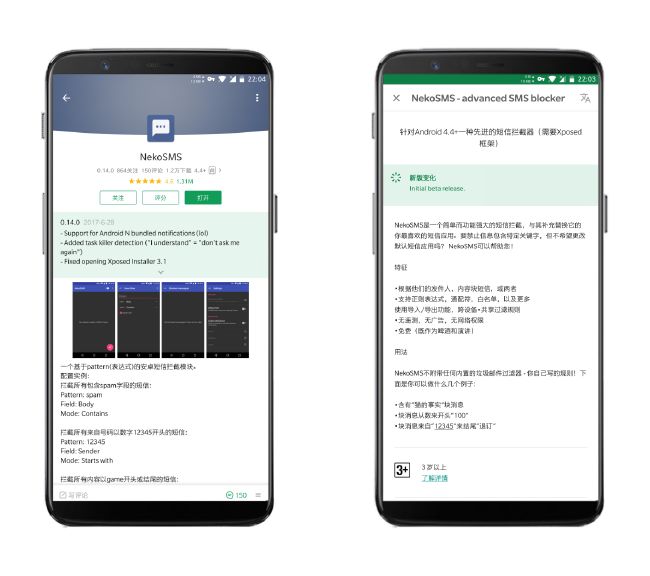NekoSMS 是一款基于 Xposed 的短信拦截器,适用于 Android 4.4+,轻量级,大小仅为1.31M,最新版本 0.16.0,文末提供下载地址,若在酷安下载到 0.14.0 版本后可在 Xposed 的「下载」界面进行更新。关于 Xposed 的介绍,可参考我派的文章 《关于 Android 7.1 的 Xposed,你想知道的都在这》。