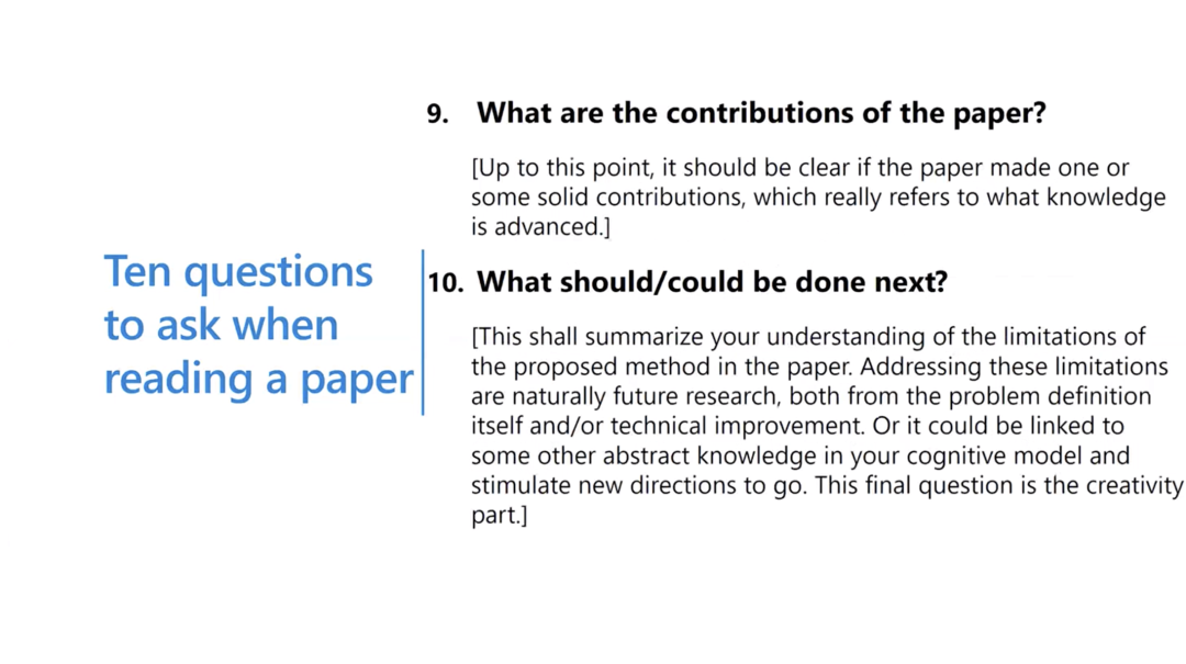 9. 这篇文章的贡献是什么?回答了前面 8 个问题之后,第9个问题的答案也呼之欲出了。你应当试着用自己的语言总结出来。
