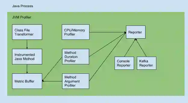 JVM Profiler 的设计很简单,但扩展性很强。用户可以自行添加其他的 profiler 实现,以收集更多的矩阵。这样,用户便可以添加自己的矩阵发布报告。