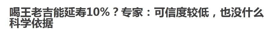 而且,王老吉也不是第一次向外界宣称“喝王老吉可延长寿命大约10%”,2013年6月,广药集团就曾专门召开新闻发布称:通过对576只老鼠样本为期两年的保险性实验,初步发现,王老吉凉茶实验组的大鼠存活率优于对照品,显示王老吉凉茶存在延伸动物寿命的作用。”