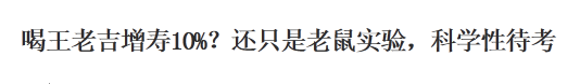 即使是在大鼠身上的实验获得了成功,但人体构造比起大鼠可复杂多了。而且现在就算是广告打得飞起的保健品也不敢说可以提高人类寿命10%。