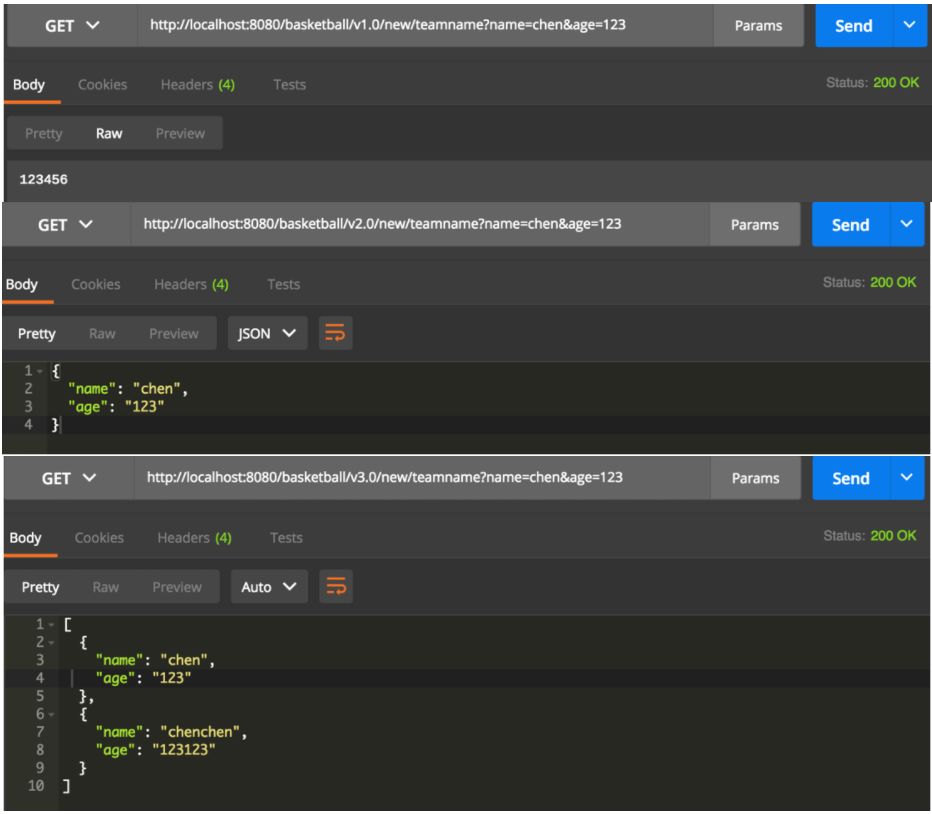 (4)运行程序,别忘了配置Tomcat,使用Postman进行接口测试,分别对上面的三个接口请求: