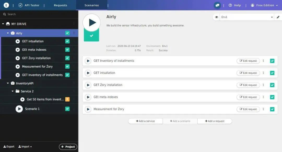 ReadyAPI 是用于功能、安全性和负载测试的高级平台,可与你的 CI/CD 管道紧密集成。ReadyAPI 是可单独购买许可证的 3 种工具的组合:SoapUI Pro(功能测试)、LoadUI Pro(性能测试)和 ServiceV Pro(服务虚拟化)。它们声称自己是“市场上最先进的 API 测试工具”,这可能并不是夸张的说法。